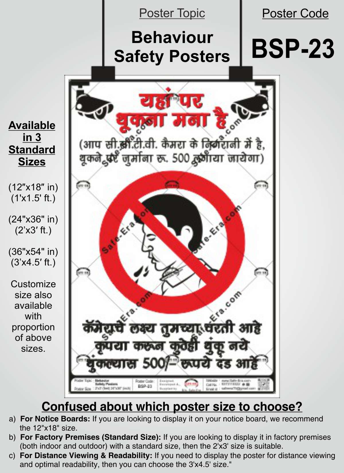 Safety Posters are an essential and often compulsory product in the industrial sector. Every industry is required to display safety posters within its premises to raise awareness among workers for their safety. Our posters are thoughtfully designed to convey important safety themes, often in simpler language (Hindi & English), ensuring broad understanding. We focus on representing the overall poster theme accurately, considering language preferences for maximum impact. These high-quality safety posters are designed and developed by Safe-Era, leveraging our expertise of over two decades in the field of safety awareness